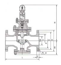 由主閥和導閥兩部分組成。主閥主要由閥座、閥閥盤、活塞、缸套、彈簧等零件組成。導閥主要由閥座、閥瓣、膜片、彈簧、調節彈簧等零件組成。Y43H活塞式蒸汽減壓閥在普通減壓閥基礎上作了很大改進,加大了活塞面積,改變了節流結構。改變了密封形式,加大了過流面積等等,從而在提高靈敏度、流量、壽命等方面大大改善了性能。通過調節調節彈簧壓力設定出口壓力,利用膜片傳感出口壓力變化,通過導閥啟閉驅動活塞調節主閥節流部位過流面積的大小,實現減壓穩壓功能。Y43H活塞式蒸汽減壓閥主要用于蒸汽管路,超減壓穩壓作用。